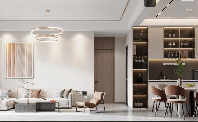 本案業主一家四口,夫婦二人和兩個兒子;平時夫婦一家四口常住; 設計理念:此項目為中古風去客廳化設計,室內空間樸素、大方,但其功能性強。從細節上來說,顏色不用太多,布局大方,格調素雅。讓生活節奏慢下來感受一杯茶一本書的慢生活,但又富有朝氣的生活特征,沒有過分的裝飾,采用地磚、木地板、藝術漆、聯動推拉門搭配,滿足業的對設計及功能使用上的需求。