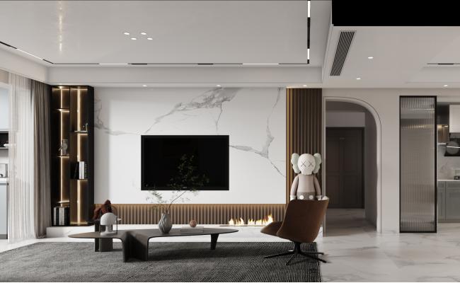 打通客餐廚界限,拓寬視覺尺度。以淺灰為主色調,搭配原木飾面與金屬細邊,弱化硬裝棱角。 定制嵌入式收納系統化解小戶型儲物難題,軟裝選用低飽和色塊點綴,兼顧美學與實用性,打造簡約舒適的現代宜居空間。