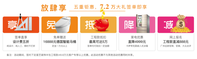當(dāng)裝修遇上小長(zhǎng)假,讓優(yōu)質(zhì)與優(yōu)惠齊飛。五重鉅惠,7.2萬(wàn)簽單大禮放肆享。花一樣的錢裝修,享受更好的家居品質(zhì)。