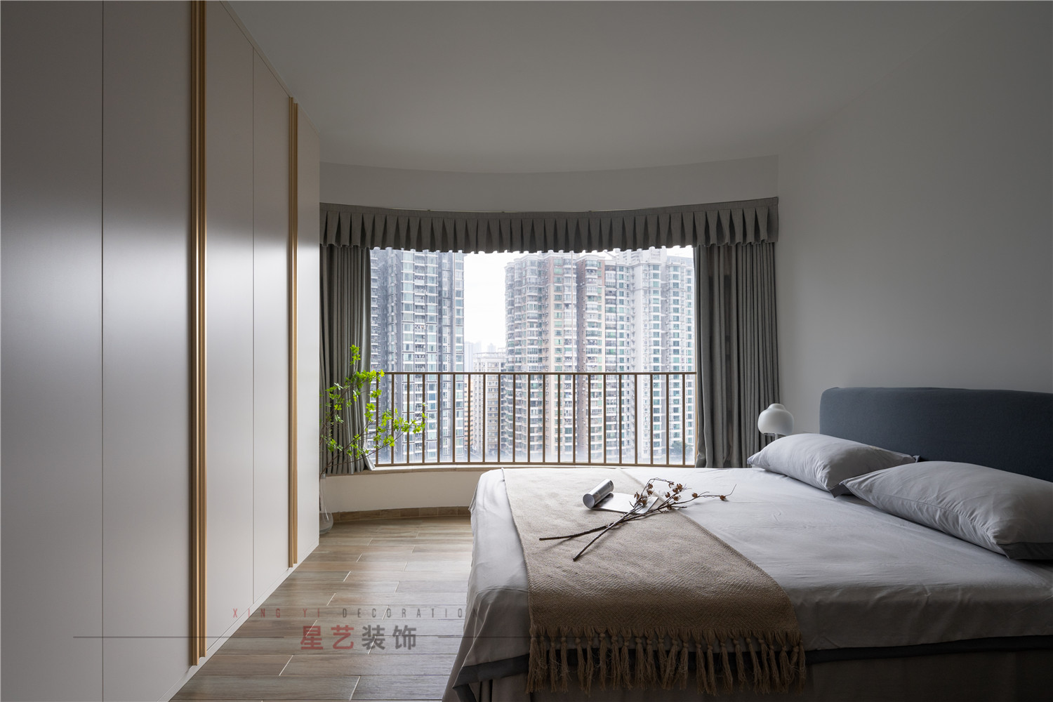 大人的臥室優雅大氣,整面衣柜讓房間更加整潔,窗簾選擇更加輕盈的材質,在視覺上擴大空間,設計上營造出寧靜溫馨的氛圍,輕松的心情在家中得以釋放。