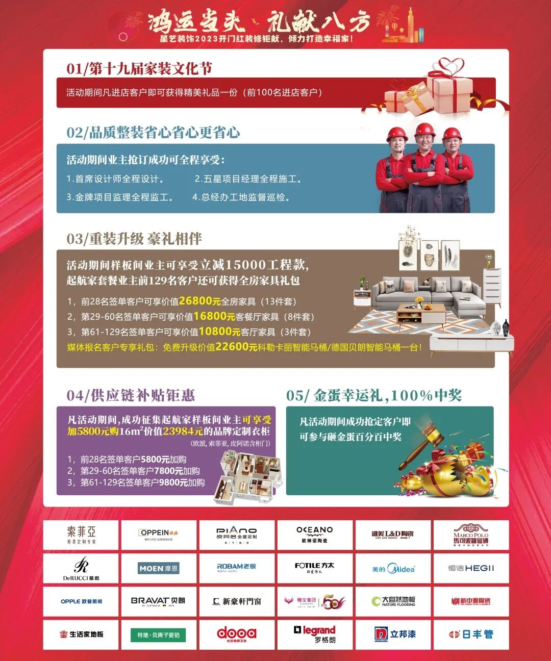 04  活動期間樣板間業主可享受立減15000工程款,起航家套餐業主前129名客戶還可獲得全房家具禮包